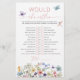 Ajoutez un peu de rire à votre baby shower avec ce Papillon Whimsical Fleur sauvage "Voudrait-elle plaire?" Jeu ! Doté d'élégants papillons aquarelles et de fleurs sauvages, ce jeu amusant et interactif permet aux clients de deviner ce que la future maman préfère choisir : café ou thé ? Des nuits tardives ou tôt le matin ? Un brise-glace parfait pour un baby shower boho, rustique ou fleuri !