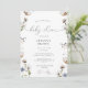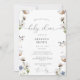 Fleur sauvage Calligraphy Baby shower Invitation. Cette magnifique invitation est dainty et délicate avec des accents fleurs sauvages et un dos bleu poussiéreux.
