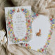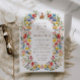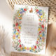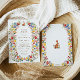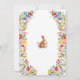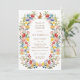 De belles invitations pour un beau Printemps de Brunch de Pâques avec un cadre Fleur sauvage de jardin de printemps en forme de bordure de couronne dans de belles couleurs rose, rouge, bleu, vert, jaune et orange, et une jolie petite illustration lapin. Une typographie élégante pour tous les détails de votre fête de Pâques.