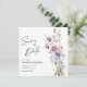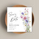 Décoré avec des accents d'aquarelle fleurie vibrante et colorée, ce magnifique mariage floral Fleur sauvage Élégant Enregistrer La carte Date est le choix idéal pour élever votre faire-part mariage. Le design botanique rustique et boho ajoute un charme de jardin qui complète parfaitement les fêtes de jardin. Cette invitation exquise et intemporelle allie harmonieusement la beauté de fleurs sauvages délicats à la typographie contemporaine, contribuant ainsi à l'esthétique moderne mais intemporelle et romantique. Parfait pour les fêtes d'été ou de printemps. Utilisez l'outil de conception pour customiser la couleur, la police de texte, la taille et le placement de l'arrière - plan à votre goût.