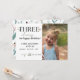 Invitation photo "Trois Cheers" pour le troisième anniversaire avec des fleurs fantaisistes.