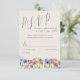 Carte rsvp de mariage fleur sauvage avec photo personnalisée, code qr et forme de réponse traditionnelle, décorée de fleurs sauvages aquarelle. Ce design botanique rustique de campagne a une jolie frontière de fleurs sauvages, y compris la marguerite cornflower conflower buttercup et le trèfle. Un élégant fleuri moderne avec un thème bohème de jardin. Parcourez ma boutique dans la collection Charm Fleur sauvage, pour trouver des objets correspondants ou envoyez-moi un message pour créer des designs supplémentaires dont vous avez besoin.