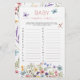 Ajoutez un peu de plaisir et d'excitation à votre baby shower avec ce Whimsical Fleur sauvage Butterfly Baby Name Race Game! Doté d'un charmant papillon aquarelle et d'un design fleur sauvage, ce jeu imprimable invite les clients à trouver un nom de bébé pour chaque lettre de l'alphabet, mais soyez rapide ! La première personne à compléter sa liste gagne. Un complément parfait à un boho, un jardin ou un baby shower fleuri !