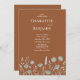 Un faire-part de mariage rustique avec des fleurs sauvages délicats et une palette d'oranges brûlées, parfait pour créer une fête élégante et romantique.