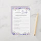 "Flower All Eyes On The Bride Fête des mariées Game" est une activité créative et délicieuse pour les douches nuptiales. Ce jeu présente de belles fleurs violettes qui inspirent les clients à dessiner leurs robes mariages de rêve. Avec son charmant thème floral, ce jeu ajoute une touche d'élégance à la célébration. Laissez vos invités mettre en valeur leur sens artistique et leur imagination avec ce jeu de douche nuptiale amusant et engageant!