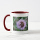 Boule de fleurs violettes avec fond de pré vert et milieu violet avec texte noir : "Bonne journée".