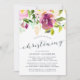Baptême floral élégant et moderne ou invitation à la baptême présente un bouquet de fleurs d'aquarelle vives et colorées dans les tons rose vif et violet framboise, avec des feuilles botaniques verdoyants. Personnalisez avec vos détails de baptême en lettres bleues élégantes de minuit accentuées de calligraphie de style manuscrit. Inclut l'espace pour la cérémonie religieuse et une fête ou une réception à suivre. Cartes inversées à vert jasper solide.
