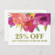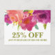 Modèle de carte postale promotionnelle avec de magnifiques fleurs aquarelles peintes à la main sur la couverture. C'est un modèle en ligne que vous pouvez éditer facilement et rapidement ici et maintenant. Modifiez le texte comme vous le souhaitez, changez la couleur, la police, la taille. Une fois que vous avez terminé l'édition comme vous le souhaitez (et vérifié l'orthographe car ce qui est affiché à l'écran sera imprimé), les cartes postales haut de gamme seront imprimées de manière professionnelle et livrées à votre porte.