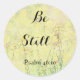 Mon oeuvre d'art numérique originale est présentée sur cet autocollant de foi, composé de fleurs sauvages jaunes avec les mots "Be Still...." et la référence biblique de l'Écriture des mots trouvés dans Psaume 46:10. Le lettrage est dans un joli type de police calligraphique. Ces autocollants sont un design d'art contemporain. Ils peuvent être utilisés pour de nombreuses occasions; pour sceller vos enveloppes ou sacs de sandwich ou même dans des livres de rebut!