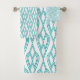 Ce set de serviettes a un design Art Déco de diamants reliés par des lignes courbes en turquoise.