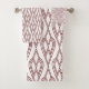 Ce kit de serviettes a un design Art Déco de diamants reliés par des lignes courbes en rouge brique.