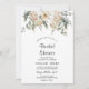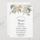 Célébrez dans une élégance intemporelle avec cette invitation à la douche nuptiale magnifiquement conçue. Doté d'un agencement délicat de roses blanches et ivoire, de pivoines et de chrysanthèmes, agrémenté de fleurs d'aquarelle bleu pervent et de feuillage vert, ce design est parfait pour une douche de mariage romantique de printemps.