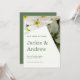 Fleurs blanches et Faire-part de mariage verdoyante - Belle Faire-part de mariage moderne vert et blanc.