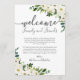 Utilisez nos cartes de bienvenue de l'hôtel mariage aux fleurs blanches et à la verdure pour vous aider à accueillir vos invités hors de la ville et leur faire connaître plus d'informations sur votre itinéraire mariage. . Utilisez l'outil "Personnalisez ce modèle" de Zazzle pour saisir les informations sur la cérémonie du mariage. Si vous avez besoin de modifier le placement des zones de texte, la couleur de police ou la taille de la police cliquez simplement sur le bouton "Cliquez pour customiser plus loin" pour changer ces choses. N'oubliez pas de consulter notre vaste sélection d'articles de coordination en parcourant la collection de Mariages Floraux blancs modernes !