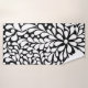 Fleurs et pétales blancs tourbillonnants contre un arrière - plan noir audacieux. Peinture numérique originale. Bords croustillants, lignes aiguisées, points blancs et pétales tourbillonnants.