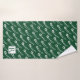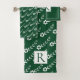 Serviette de bain fleurie vert émeraude à fleurs blanches. Il présente un motif de petites fleurs et de feuilles et votre monogramme sur arrière - plan vert.
