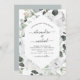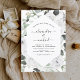 Fleurs blanches Roses et eucalyptus botanique Invitations de mariage de printemps ou d'été aquarelle - comprend une belle et élégante typographie de script avec des fleurs botaniques tropicales modernes et de la verdure pour la célébration spéciale du jour du mariage.