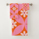 Ceci est mignon fleurs rétro blanc sur les cercles roses du milieu du siècle motif sur motif orange