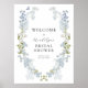 Bienvenue les invités à votre douche nuptiale avec cette belle enseigne, avec une couronne de fleurs bleues, hydrangées, ne m'oubliez pas et la verdure. Ajoutez le nom du client d'honneur, la date de la douche et le texte de bienvenue personnalisé en utilisant les champs fournis.