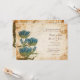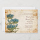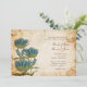 Cette belle faire-part de mariage présente un vieux look de texture vintage avec des images de fleurs sauvages de pavot bleu turquoise sur le côté. Idéal pour toute mariée à la recherche d'un look vintage classique. Une invitation idéale pour le mariage campagnard, les mariages du printemps, les mariages d'été, les mariages d'automne ou d'automne, les mariages d'extérieur et d'jardin, ou pour une douche ou un wedding shower nuptiaux ou encore une invitation à une fête de fiançailles. Cet élégant invitation pourrait également être customisé pour une fête de retraite ou une invitation à la fête d'anniversaire. Cherchez le RSVP correspondant disponible dans mon magasin!