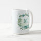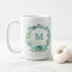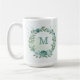 fleurs bleues romantiques avec quelques feuilles vertes tasse à café botanique.