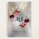 Un arrière - plan faux argenté avec des faux étoiles dorées. Décoré d'un cadre géométrique en faux or et de fleurs aux couleurs bordeaux, rose et or rose, fleurons. Personnalisez et ajoutez vos lettres monogrammes, initiales. Lettres de couleur noire. Parfait pour l'école, le travail ou l'organisation de votre vie personnelle/familiale.