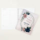 Planificateur de mariage unique avec des fleurs roses et bleues marines romantiques et des feuilles vertes