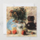Vase avec fleurs, cafetière et fruits de Vincent van Gogh est une peinture à l'huile florale de style post-impressionniste représentant une nature morte. Une scène de cuisine avec des fleurs dans un vase décoratif, une cafetière, une assiette bleue et de la nourriture et des fruits posés sur une table.