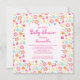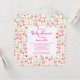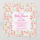 Jolie invitation au baby shower floral et dainty avec cadre fleuri rose, bleu turquoise, jaune & orange sur un arrière - plan blanc chic. Retournez notre baby shower moderne pour voir le retour correspondant pour un extra spécial