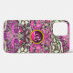 Design floral coloré, élégant et classique avec des tourbillons, paon, oiseaux et figurines de dragon en rose, noir blanc fuchsia violet violet couleurs sont élaborés à partir de tissu vintage avec un gemme améthyste 3D brillant.