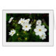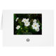Photo de fleurs cosmos blanches, ressemblant à un petit cosmos d'étoiles parmi les feuille. La carte a été laissée vide à l'intérieur mais peut être customisée plus loin.