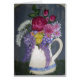 L'original est peint sur un conseil ovale. Le blanc démodé a glacé le broc tenant un bouquet des fleurs - roses, marguerites, dentelle de la Reine Anne, renoncules et glycines.