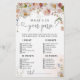 Le jeu "What's in Your Purse" est un moyen amusant et léger de divertir les invités et de créer un sentiment de camaraderie et de rire. Le design ludique du jeu ajoute un sentiment de joie et de fantaisie au design général, ce qui en fait l'ajout parfait à toute célébration de douche nuptiale. Éléments correspondants disponibles. Merci!