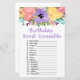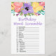 Fleurs d'aquarelle JEU D'ANNIVERSAIRE WORD SCRAMBL