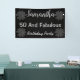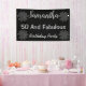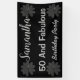 Un texte en argent "50 And Fabulous" avec des fleurs en argent métallique 3d sur un design arrière - plan noir pour personnaliser avec le nom et l'âge pertinent, pour un anniversaire spécial.