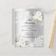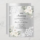 Pour un 60e anniversaire de mariage élégant et romantique. Un faux arrière - plan argenté décoré de fleurs blanches, de roses et de dentelle blanche. Personnalisez et ajoutez vos noms et détails. 1 feuille = 1 invite imprimé bord à bord.
