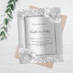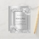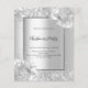 Arrière - plan à l'aspect argent faux décoré de fleurs, fleurs et parties scintillant faux argent, scintille. Personnalisez et ajoutez les détails de votre fête. Lettres noires. 1 feuille = 1 invite imprimé bord à bord.