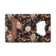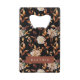 Élevez vos cadeaux de mariage avec l'Ouvre-bouteille pour carte de crédit Fleurs de l'automne noir de la "Collection d'invitations de mariage Fleurs et feuilles de terracotta noires d'automne". Immergez vos invités dans l'élégance époustouflante de feuilles brûlées orange et terracotta peintes à la main à l'aquarelle, de dahlias crème et beige, et de roses cuivrées et couleur rouille sur fond noir. Cet ouvre-bouteille élégant et pratique capture parfaitement l'essence d'un mariage automnal et se glisse commodément dans les portefeuilles de vos invités, en faisant un souvenir précieux qui allie fonctionnalité et design exquis. Conçu pour se coordonner avec le reste de la collection, il ajoute une touche de sophistication à votre célébration. Personnalisez dès maintenant pour améliorer votre mariage automnal avec un cadeau élég