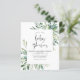 Cartons d'invitation de Baby Shower Floral de printemps à l'aquarelle botanique verdoyante sur fond vert et blanc - comprend une typographie élégante et belle avec des feuilles botaniques modernes et de la verdure pour la célébration de la future maman.