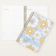 Voici cette couverture de planificateur personnalisée avec un design graphique de marguerite rétro fascinant en bleu clair, or et blanc. Ce planificateur est un mélange parfait d'art et de fonctionnalité, vous promettant une expérience unique et élégante que vous travailliez ou jouiez.