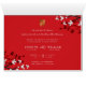 Fleurs de cerisier / Sakura de printemps blanches/rouges sur fond rouge avec double bonheur doré Carte pliée d'invitation de mariage chinoise.