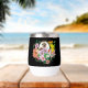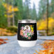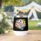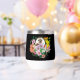 Un joli hérisson assis au milieu de fleurs d'été colorées sur un fond noir