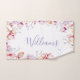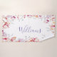 Branches aux fleurs de magnolia rose, violet et doré. Arrière - plan blanc élégant. Violet, lavande couleur lettré à la main script et modèle pour votre nom de famille.