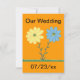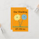 La peinture de fleurs marguerites jaunes et bleues et d'herbe verte, avec des espaces réservés pour les informations de mariage, est imprimée sur des invitations recto verso. Les détails sont faciles à personnaliser sur les formulaires de modèle. La couleur d'arrière-plan peut également être personnalisée.