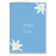 Fleurs de Pâques sur carte bleu clair. Le texte peut être personnalisé pour un anniversaire.