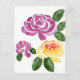 Carte postale avec ma peinture originale aquarelle de pivoines roses et de pivoines jaunes contre un arrière - plan blanc.