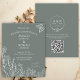 Fleurs de prairie Sirocco Green Mariage Budget Invitation avec des éléments de fleurs blanches. C'est le design parfait pour ceux qui ont des mariages boho, des mariages rustiques, et plus ! Cette invitation bohème-chic affiche un dessin botanique détaillé sur une couleur solide. Les noms, dates mariages et lieux événementiels se retrouvent au centre dans un mélange de polices romantiques. L'arrière est ornée d'un monogramme floral qui comprend les initiales, le nom et la date de l'événement. Ce Faire-part de mariage Fleurs Pré fait partie de notre collection Fleurs Pré avec une variété de produits de coordination disponibles. Disponible en différentes couleurs : vert sirocco, gris bleu, terre cuite, pêche, noir et blanc.