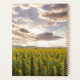 Cette photo présente un champ de tournesols au coucher du soleil.