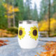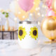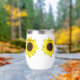 De beaux tournesols jaunes photographiques et lumineux ornent ce tumbler à vin thermal floral botanique. Personnalisez avec un Nom et apportez un beau soleil pour toute occasion. Photo botanique florale originale de JLW_PHOTOGRAPHY.