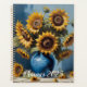 Belle illustration de tournesols en vase bleu.